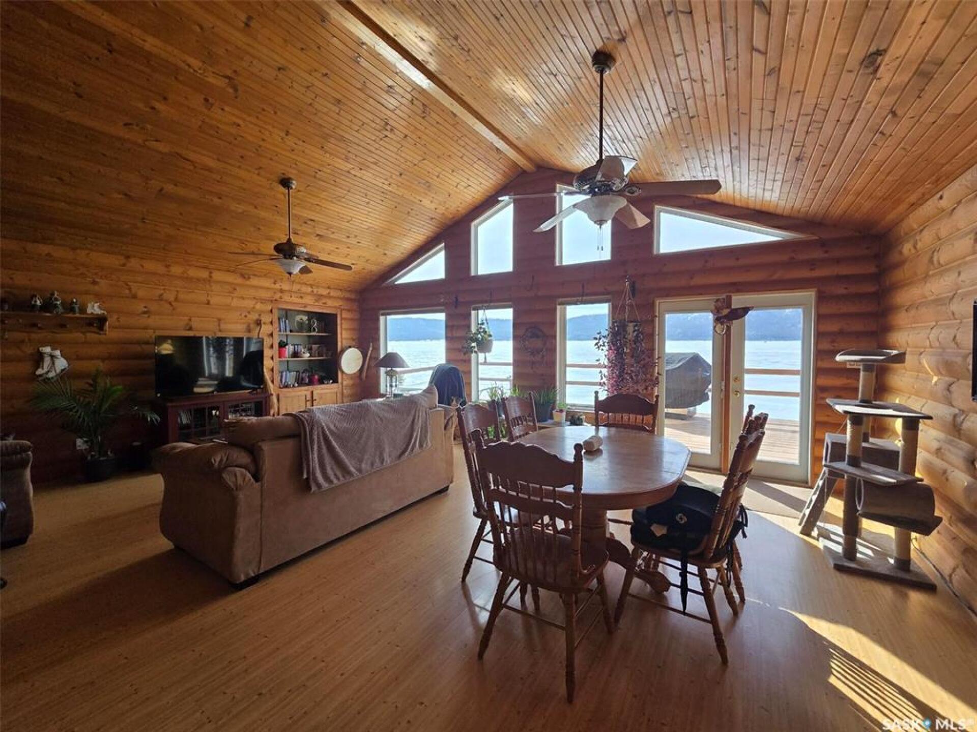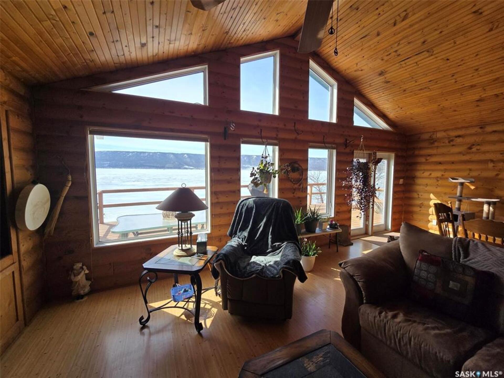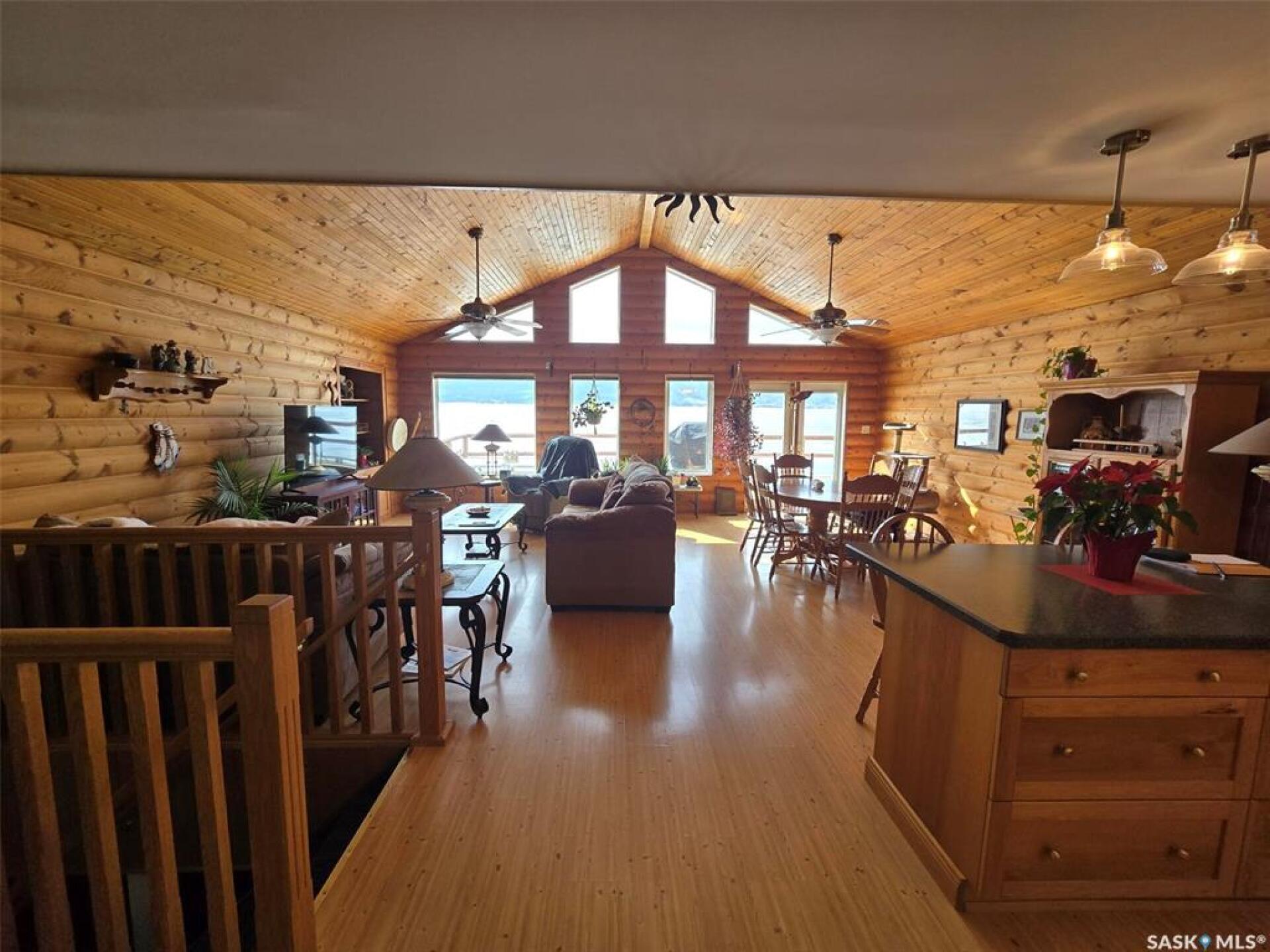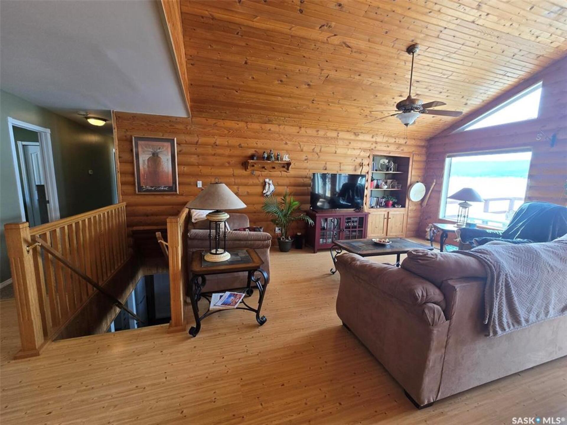 Sunsets are breathtaking at 104 Elk Road , Crooked Lake in this 3 bedroom plus 2 bath all season home with a combined total of just over 3000 sq ft. This property offers more than that though with lake front lifestyle in a log style bungalow built in 2002 with an amazing yard. Be close to nature with no direct neighbours on either side on this leased lot. The home boasts vaulted ceilings in the front living room, with south west windows allowing natural light to filter through all day. The kitchen is massive for all the company that lake life brings. There are 2 islands, one with a breakfast bar area and one is moveable with seating. Birch cabinets warm the space and provide lots of storage. Stainless steel appliances are quite new to include the BI dishwasher, fridge, stove, and microwave hood fan. Lighting has been updated. The 3 piece bath down the hall is spacious and has been renovated. Main floor laundry is situated in the Jack n' Jill bathroom off the Primary bedroom. This 4 piece bath has a jet tub and walk in shower. Wake up to the view of the lake in the Primary room , lots of closet space. Across the hall , a second bedroom. The walk out basement will be a great area to set up a gym, a rec space, extra family room , and hosts a 3rd bedroom. Boat house access on this level or turn it into a "Man Cave" , a place to set up a work shop. This sale will include a Hydo- pool Hot tub approx 6 years old, currently being used with minerals. There is a change room/ lean-to beside. Large storage shed found on the back side by the parking area. Lake life is all about the outdoors, and the bottom deck and balcony will be your favorite location. Septic - 1200 Concrete, Eco green Tank for propane, comes with dock and track. Lease is $2838 due in Dec and tax is $3106 due in Sept. Financing is available with terms and conditions . Water is delivered to home and stored in poly tank. This property is on a "No Through Road" come check it out before summer disappears. (29521347)