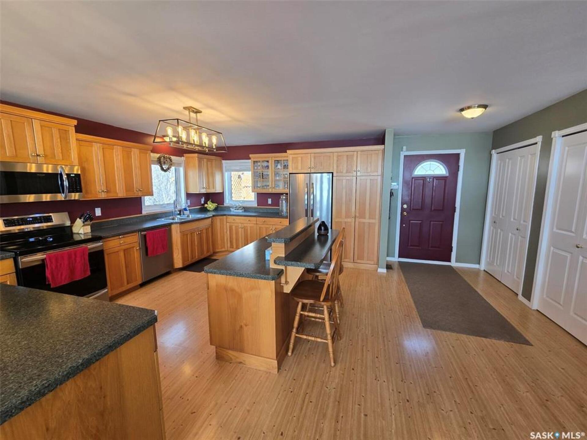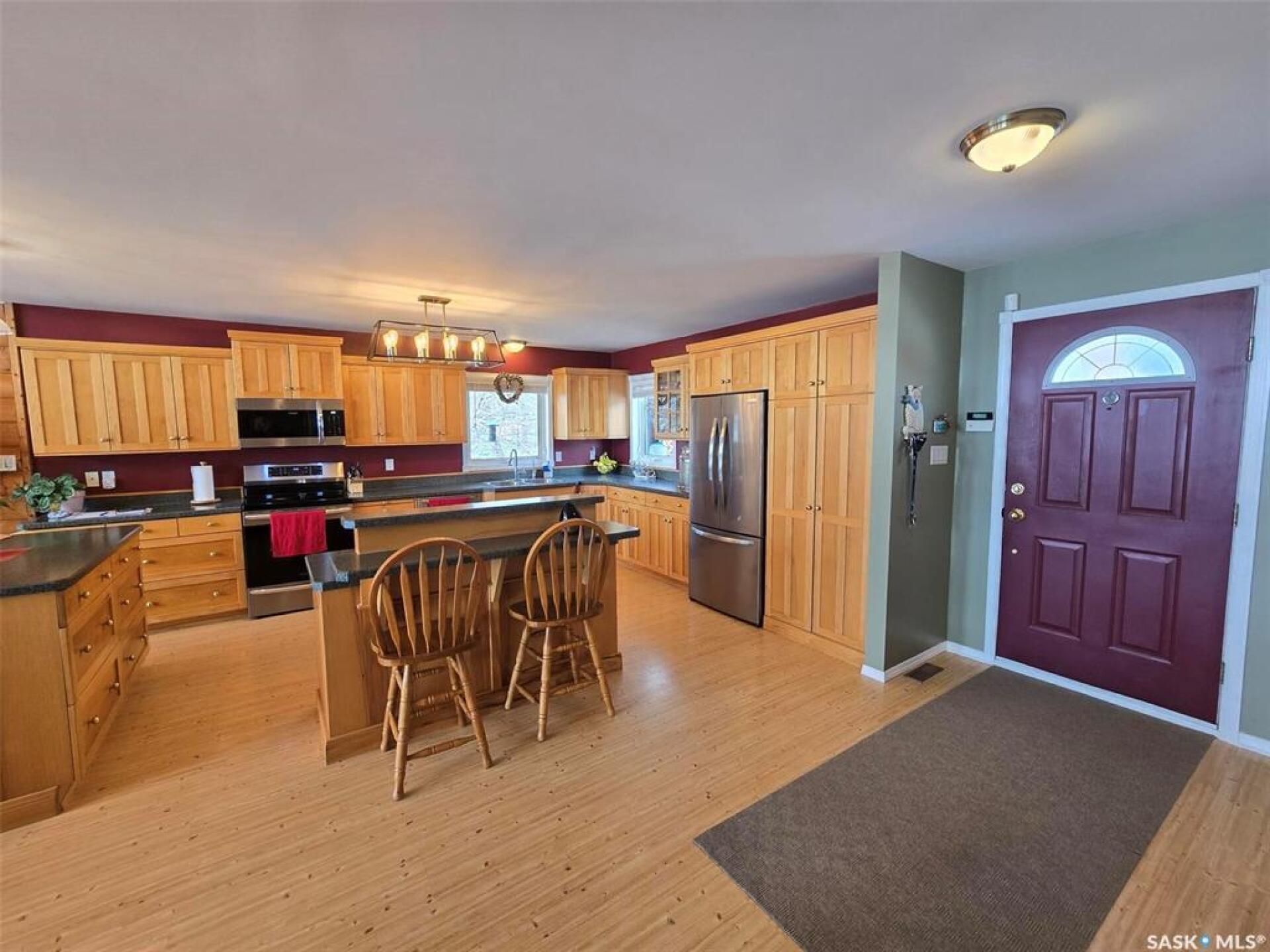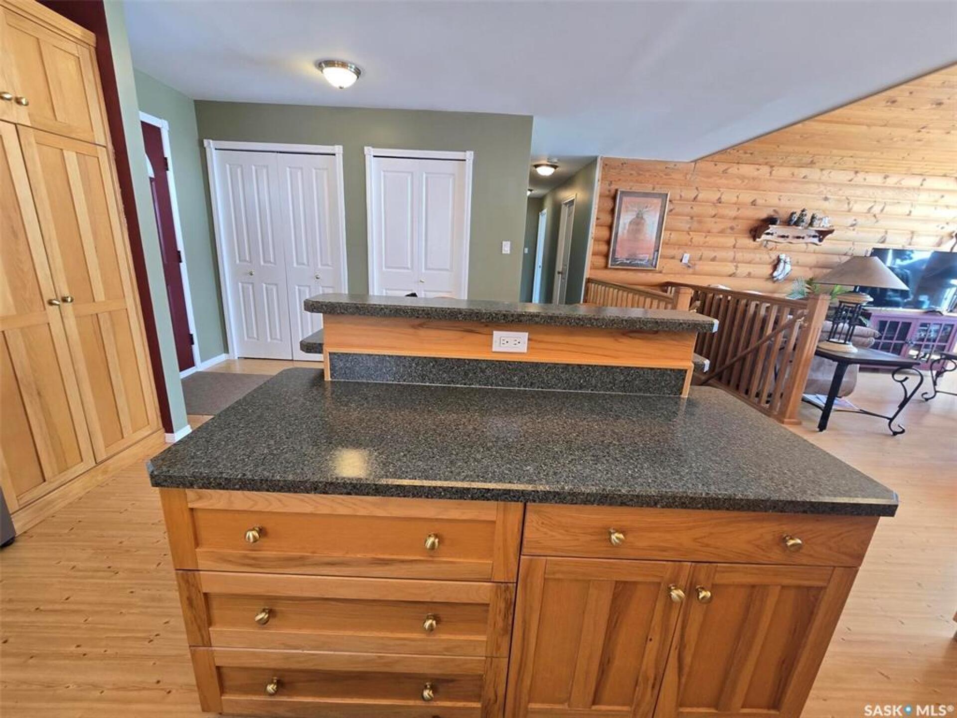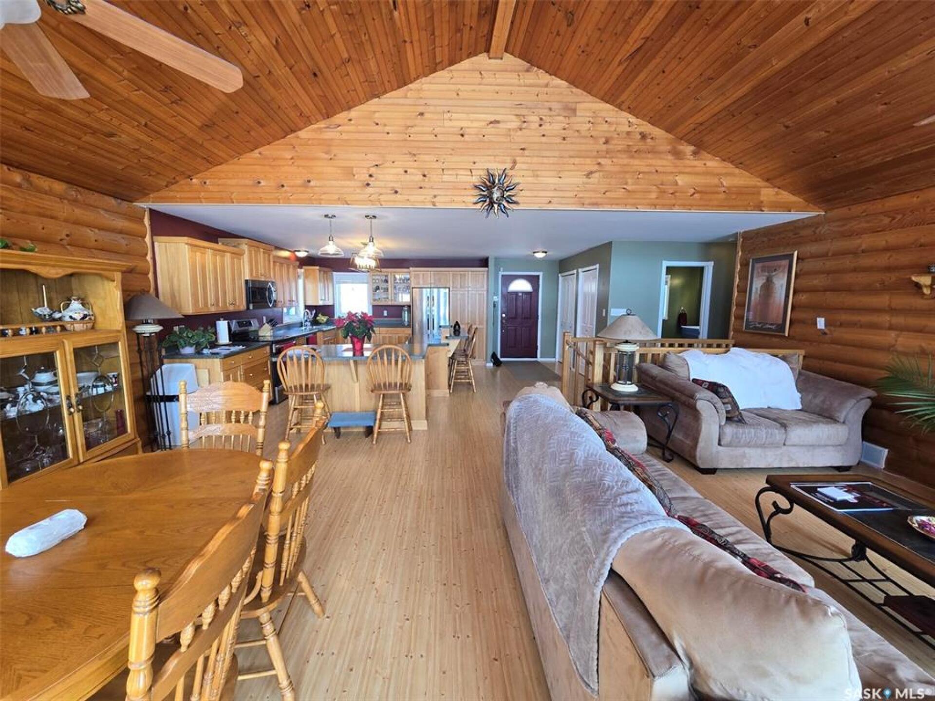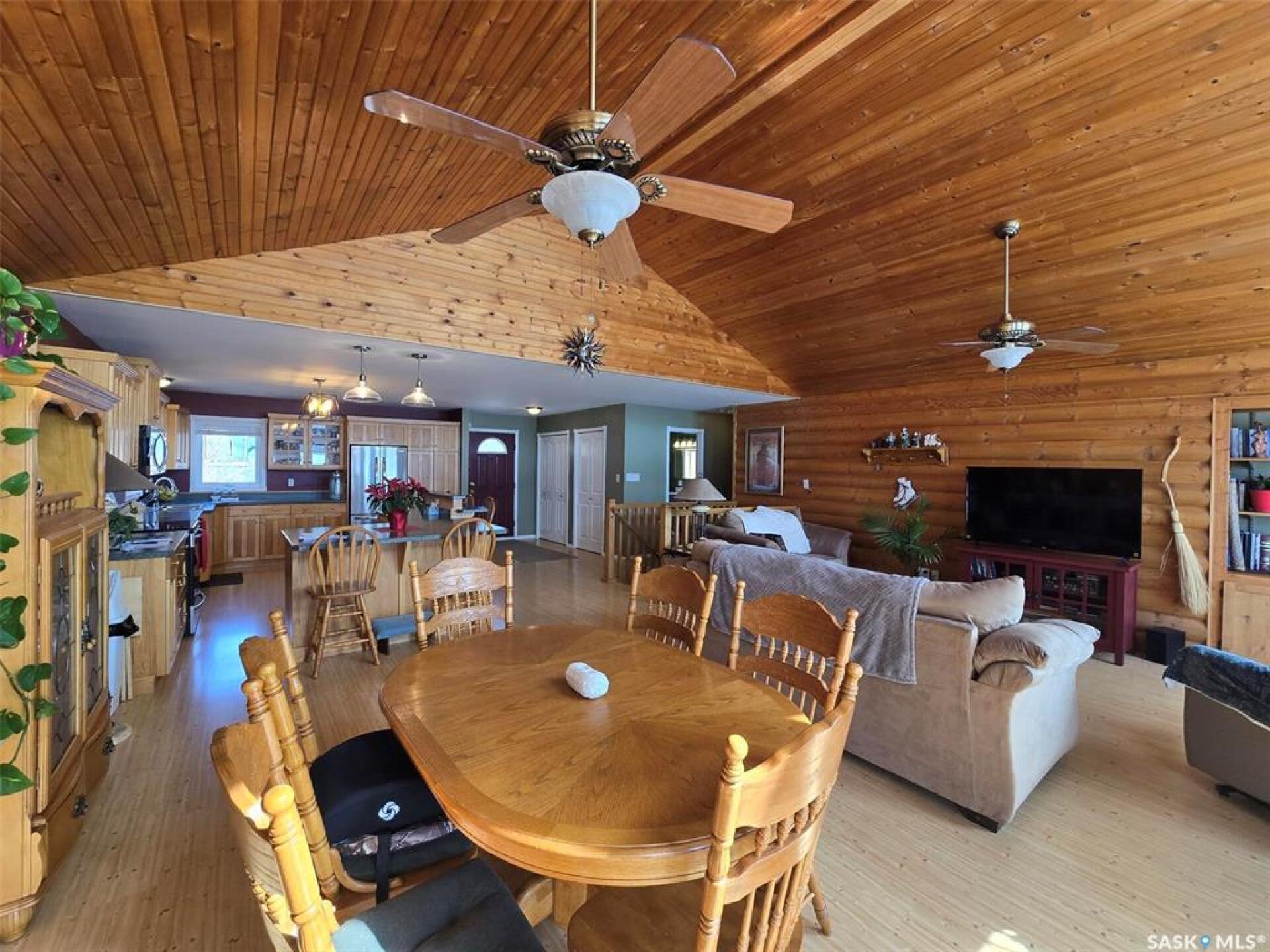 Sunsets are breathtaking at 104 Elk Road , Crooked Lake in this 3 bedroom plus 2 bath all season home with a combined total of just over 3000 sq ft. This property offers more than that though with lake front lifestyle in a log style bungalow built in 2002 with an amazing yard. Be close to nature with no direct neighbours on either side on this leased lot. The home boasts vaulted ceilings in the front living room, with south west windows allowing natural light to filter through all day. The kitchen is massive for all the company that lake life brings. There are 2 islands, one with a breakfast bar area and one is moveable with seating. Birch cabinets warm the space and provide lots of storage. Stainless steel appliances are quite new to include the BI dishwasher, fridge, stove, and microwave hood fan. Lighting has been updated. The 3 piece bath down the hall is spacious and has been renovated. Main floor laundry is situated in the Jack n' Jill bathroom off the Primary bedroom. This 4 piece bath has a jet tub and walk in shower. Wake up to the view of the lake in the Primary room , lots of closet space. Across the hall , a second bedroom. The walk out basement will be a great area to set up a gym, a rec space, extra family room , and hosts a 3rd bedroom. Boat house access on this level or turn it into a "Man Cave" , a place to set up a work shop. This sale will include a Hydo- pool Hot tub approx 6 years old, currently being used with minerals. There is a change room/ lean-to beside. Large storage shed found on the back side by the parking area. Lake life is all about the outdoors, and the bottom deck and balcony will be your favorite location. Septic - 1200 Concrete, Eco green Tank for propane, comes with dock and track. Lease is $2838 due in Dec and tax is $3106 due in Sept. Financing is available with terms and conditions . Water is delivered to home and stored in poly tank. This property is on a "No Through Road" come check it out before summer disappears. (29521347)