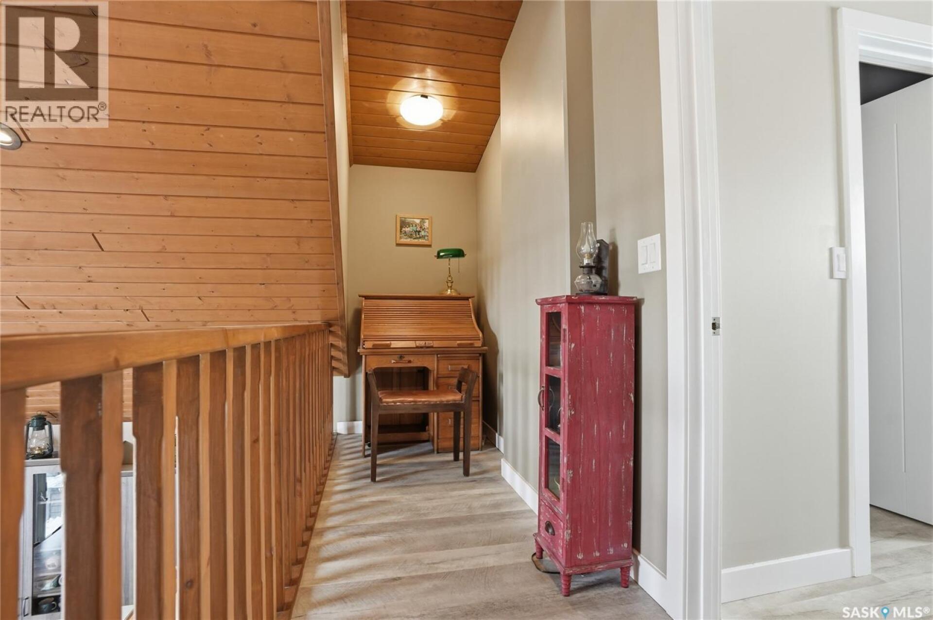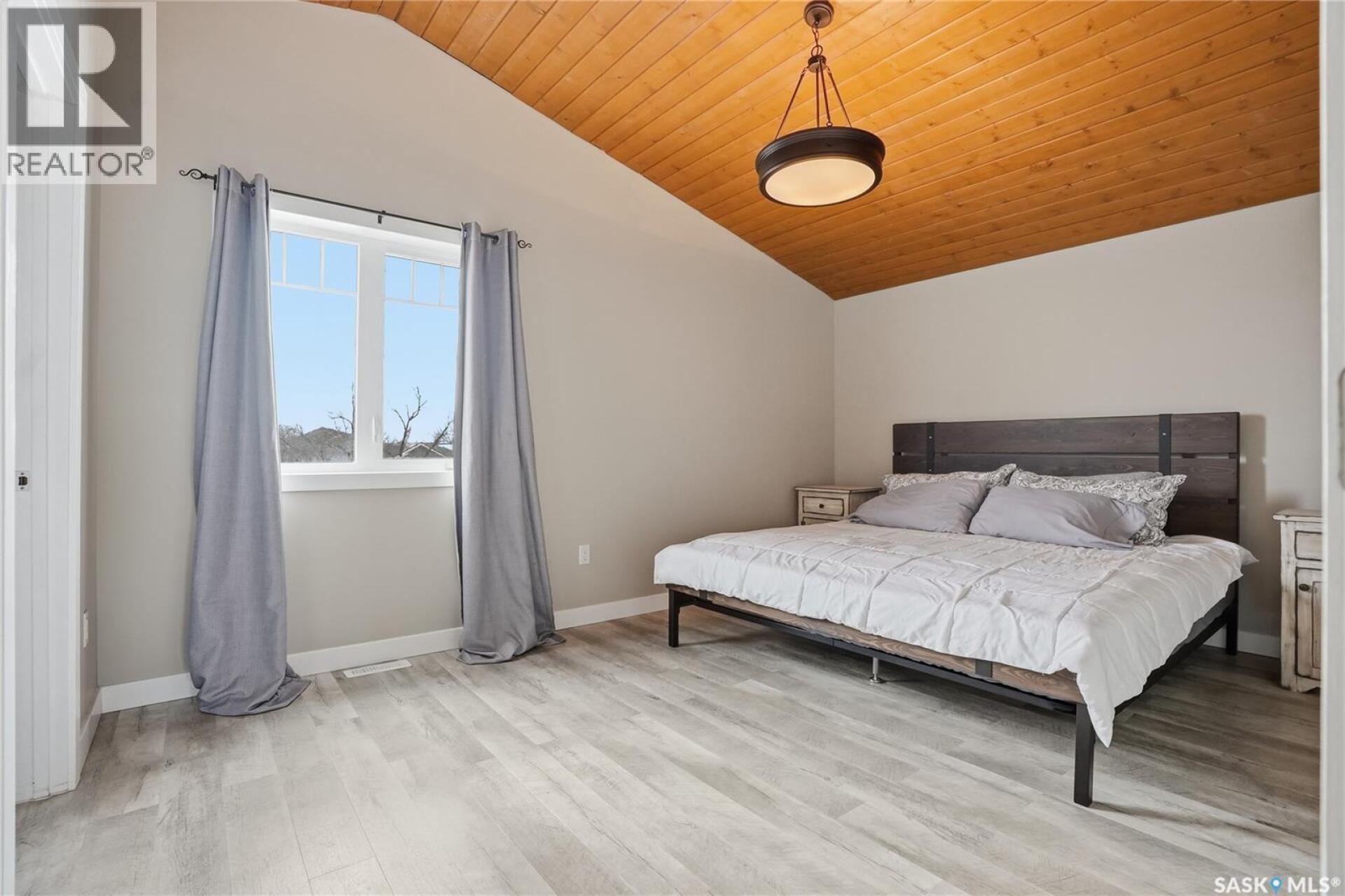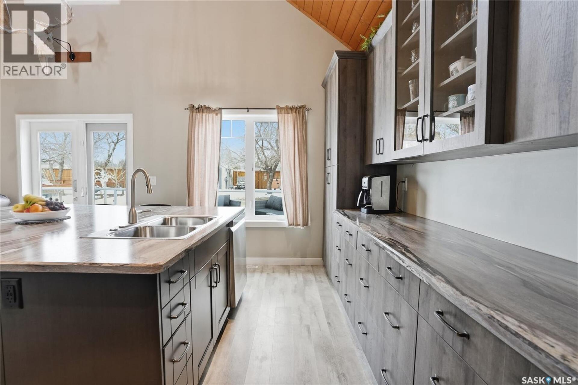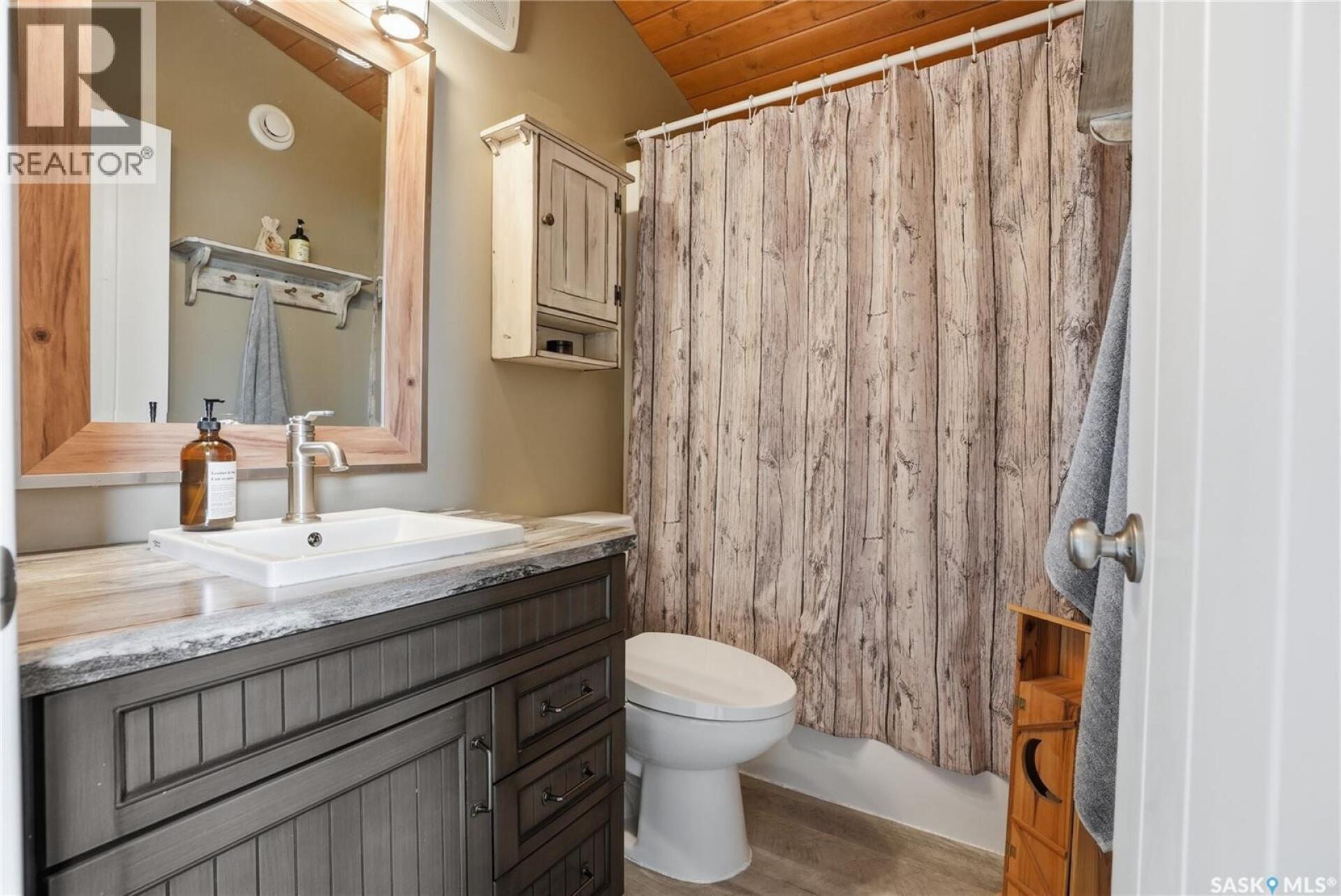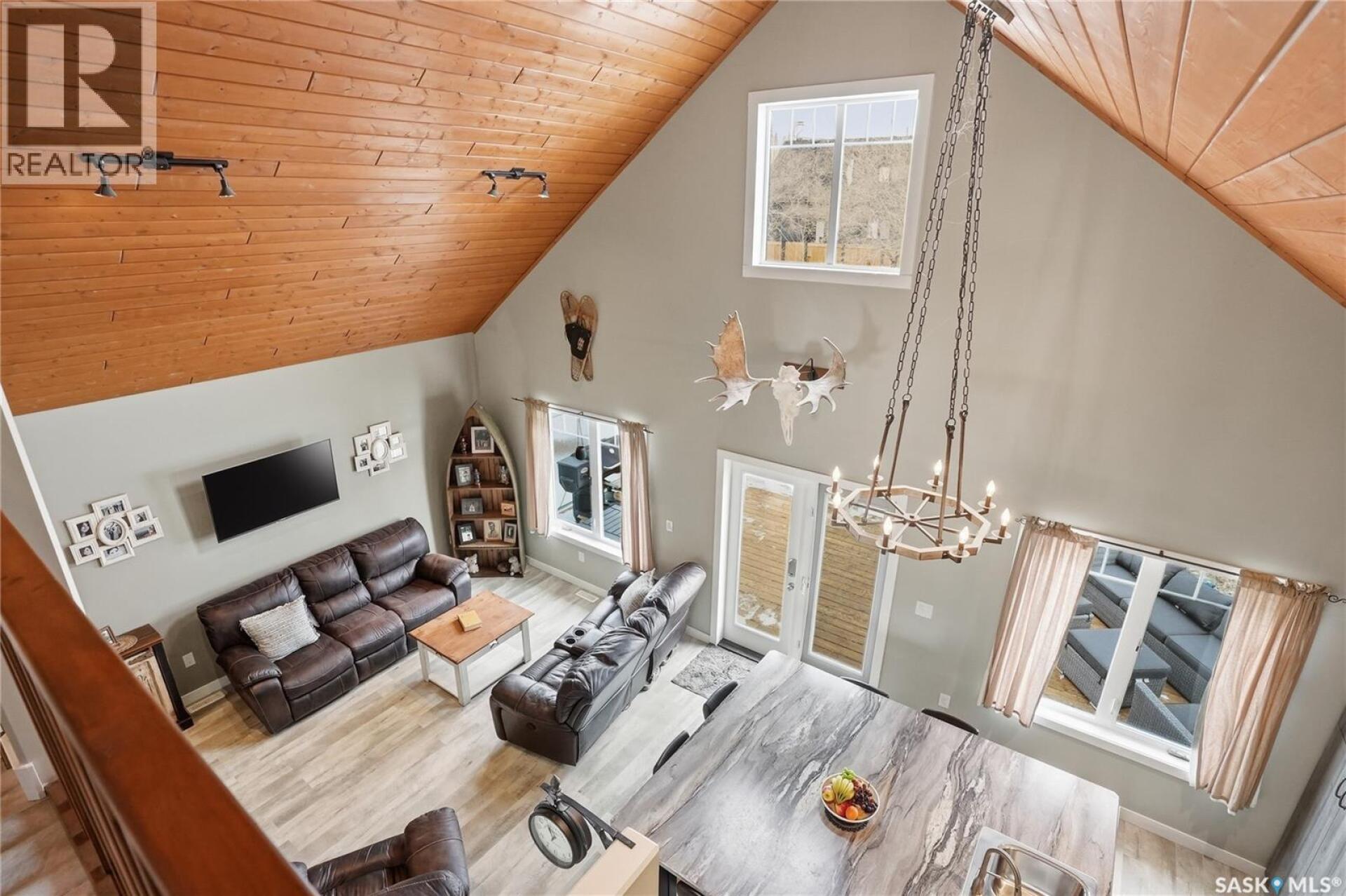 Welcome to this 4-season cabin at Sandy Shores Resort on Lake Diefenbaker, just 1 hour from Saskatoon via Highway 219. Situated on an extra-large titled corner lot 120ft x 131ft (double the width of a standard lot - can be subdivided), this property offers mature trees, exceptional space, and plenty of parking for boats, vehicles, and guests. A standout feature is the heated 2-car garage/shop with a 10’9” overhead door, ideal for storing a pontoon or recreational equipment. The fully fenced yard includes multiple access gates for added convenience. Inside, the bungalow-style home features 3 bedrooms and 2 bathrooms, including a lofted primary suite with walk-in closet and 4-piece ensuite bathroom. The spacious kitchen offers abundant cabinetry, stainless steel appliances (including dishwasher), and a large island, with an optional smaller countertop available. Vinyl plank flooring, in-home laundry, and a patio door leading to a large back deck complete the home. Central air conditioning ensures comfort during warmer months. Built with ICF foundation walls and equipped with a carbon filtration/de-chlorination system, this home combines durability, efficiency, and lifestyle. Enjoy resort-style living with access to a marina, nearby boat launch, sandy beaches, playground, sport court, and walking trails, along with treated water and year-round maintained roads. Lake Diefenbaker is known for its excellent fishing, boating, and sailing, making this an ideal destination for outdoor enthusiasts and year-round recreation. Call your favourite realtor today and book your private tour! (29586001)