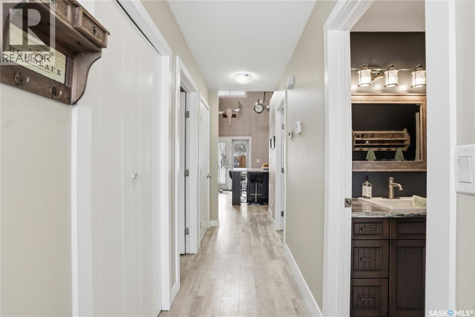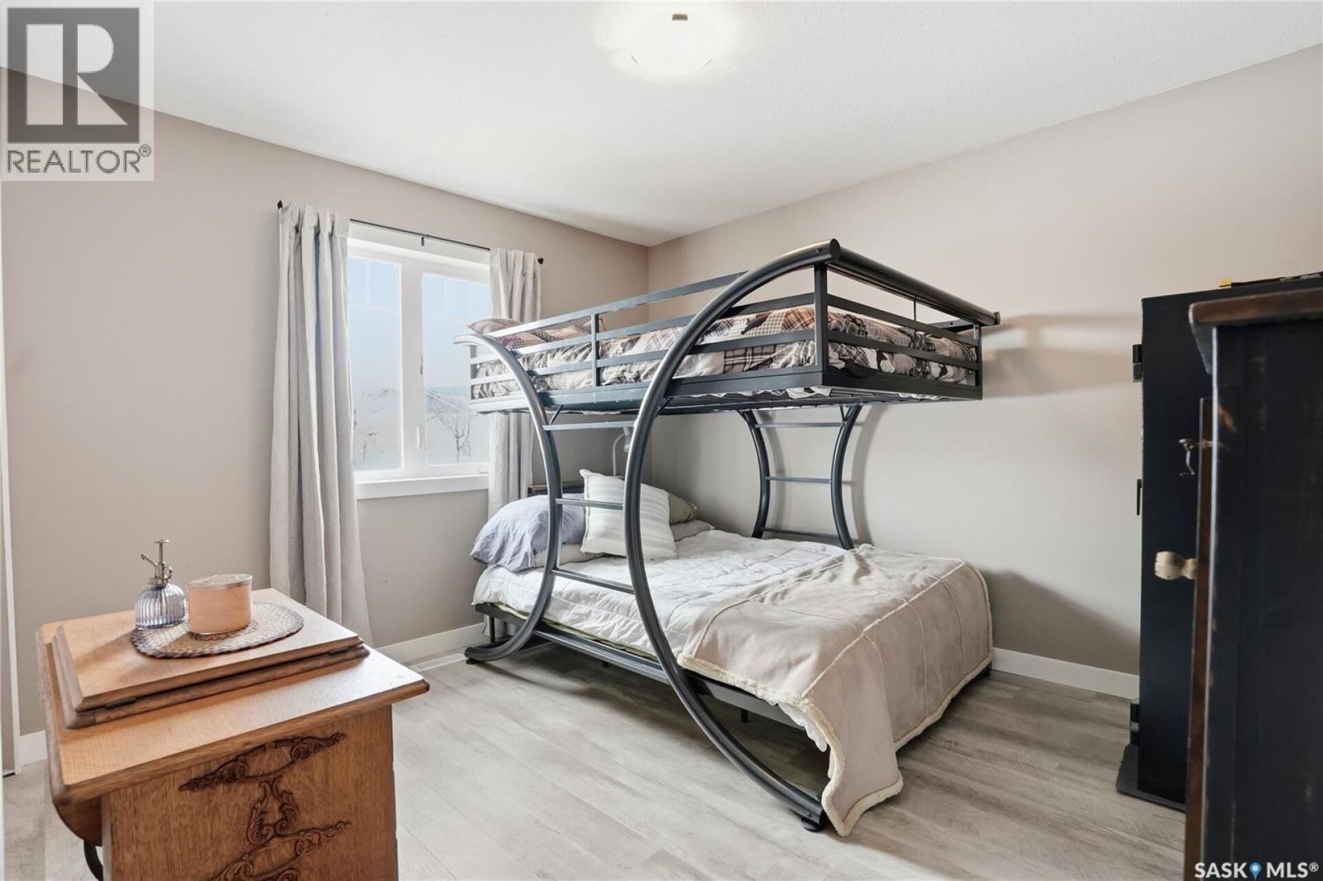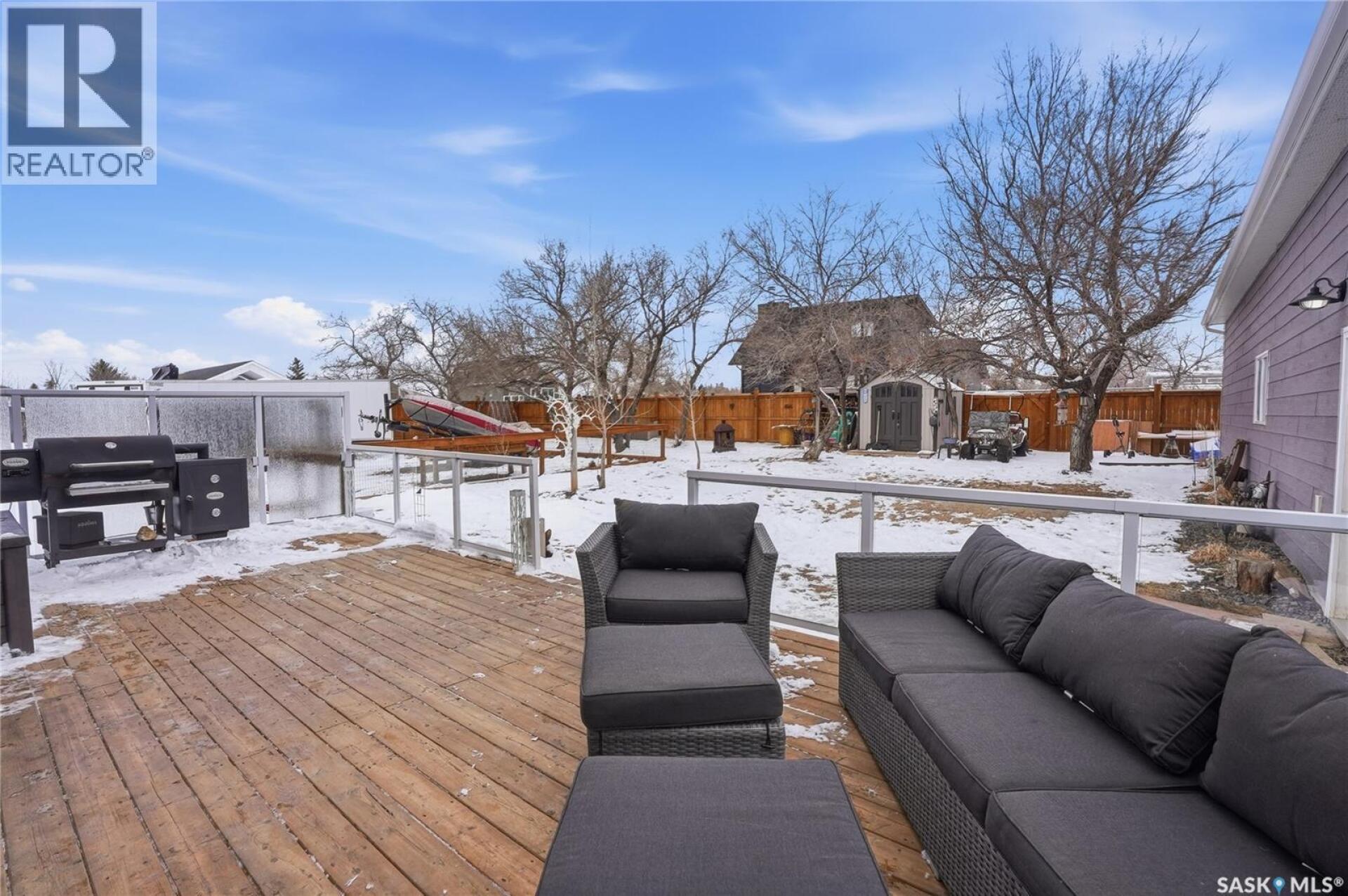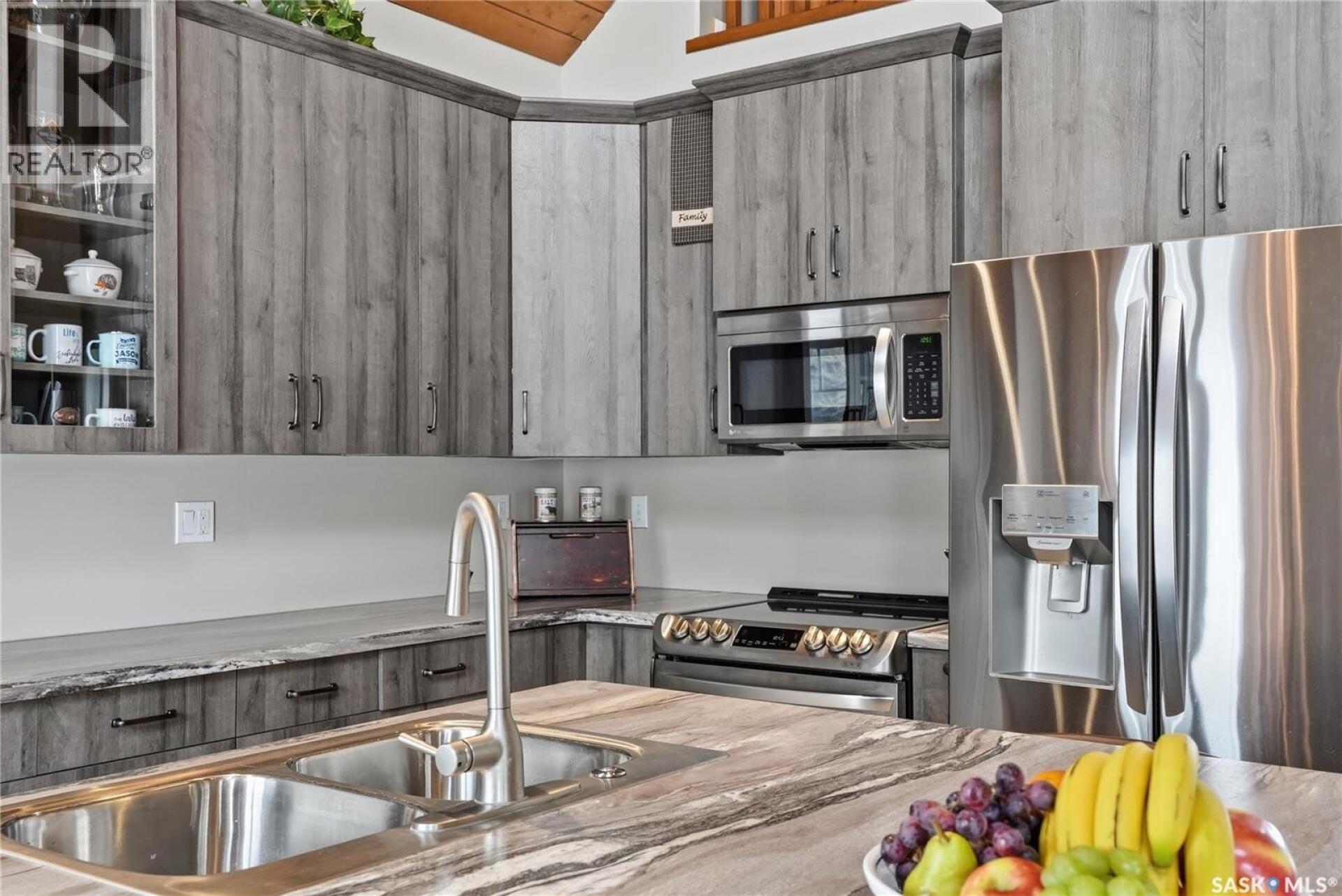 Welcome to this 4-season cabin at Sandy Shores Resort on Lake Diefenbaker, just 1 hour from Saskatoon via Highway 219. Situated on an extra-large titled corner lot 120ft x 131ft (double the width of a standard lot - can be subdivided), this property offers mature trees, exceptional space, and plenty of parking for boats, vehicles, and guests. A standout feature is the heated 2-car garage/shop with a 10’9” overhead door, ideal for storing a pontoon or recreational equipment. The fully fenced yard includes multiple access gates for added convenience. Inside, the bungalow-style home features 3 bedrooms and 2 bathrooms, including a lofted primary suite with walk-in closet and 4-piece ensuite bathroom. The spacious kitchen offers abundant cabinetry, stainless steel appliances (including dishwasher), and a large island, with an optional smaller countertop available. Vinyl plank flooring, in-home laundry, and a patio door leading to a large back deck complete the home. Central air conditioning ensures comfort during warmer months. Built with ICF foundation walls and equipped with a carbon filtration/de-chlorination system, this home combines durability, efficiency, and lifestyle. Enjoy resort-style living with access to a marina, nearby boat launch, sandy beaches, playground, sport court, and walking trails, along with treated water and year-round maintained roads. Lake Diefenbaker is known for its excellent fishing, boating, and sailing, making this an ideal destination for outdoor enthusiasts and year-round recreation. Call your favourite realtor today and book your private tour! (29586001)