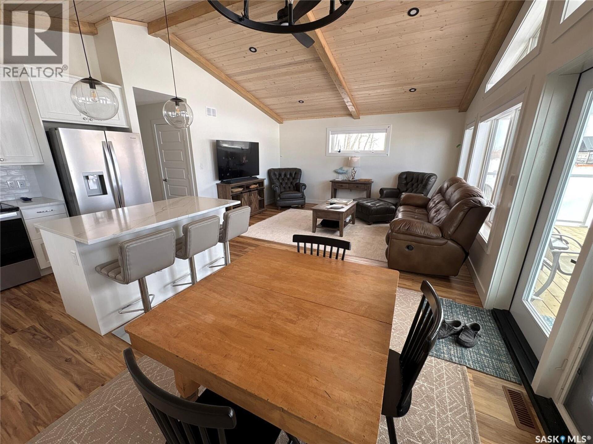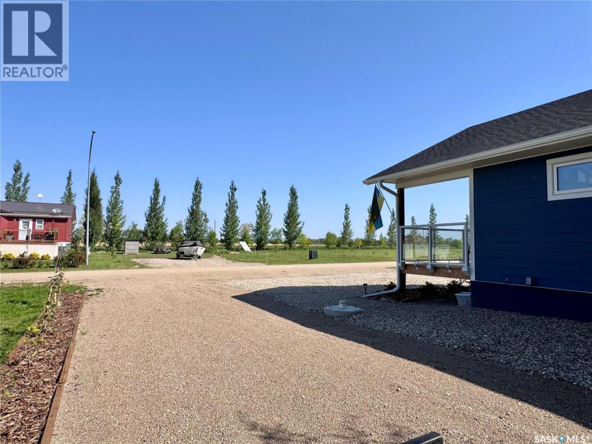 This 2025 3-bedroom RTM is located near Buckhorn Bay on Fishing Lake, SK. This 1092 square foot home features a bright and light modern interior design with luxury vinyl plank flooring, quartz countertops, soft-close cabinet doors and drawers, and other high-end finishes. Off the front is a covered deck—perfect for storm-watching and wildlife viewing—that provides excellent shade on the north side during hot summer days and leads to an open-concept dining, living, and kitchen area. Down the hall you'll find a laundry closet with stackable laundry, a full bathroom, and three bedrooms, including an ensuite off the primary bedroom. The home includes central air conditioning, a WiFi-enabled thermostat, window coverings (blinds) included, natural gas BBQ hookups at front and back, and comes move-in ready to enjoy. The back features a well-treed area with a public space buffer between the property and the lot behind, plus a firepit area. The lot is low-maintenance with crushed rock/gravel surfacing and finished landscaping including flower beds, perennials, trees, and shrubs. This property is in one of the newer developments in the area, with vacant lots and fairly new builds nearby. Larger lots than older developments offer more space for lake life. The home includes good-quality appliances (including dishwasher) and has hookups set up for an RV (power and water), with septic conveniently close—plus room to park a camper/RV next to the home. There's also room to expand and add a garage if needed. Property is in RM of SASMAN land NOT North Shore Fishing Lake effecting bylaws. Additional features include upgraded leaf guards over the gutters and an ICF crawlspace foundation for durability. Fishing Lake offers excellent fishing, watersports, golf, snowmobiling, ice-fishing, skating, and more. North Shore has a recently upgraded (since 2020) recreational area with a new ball diamond, beach volleyball, picnic area with stage, pickleball court, and basketball court. (29540365)