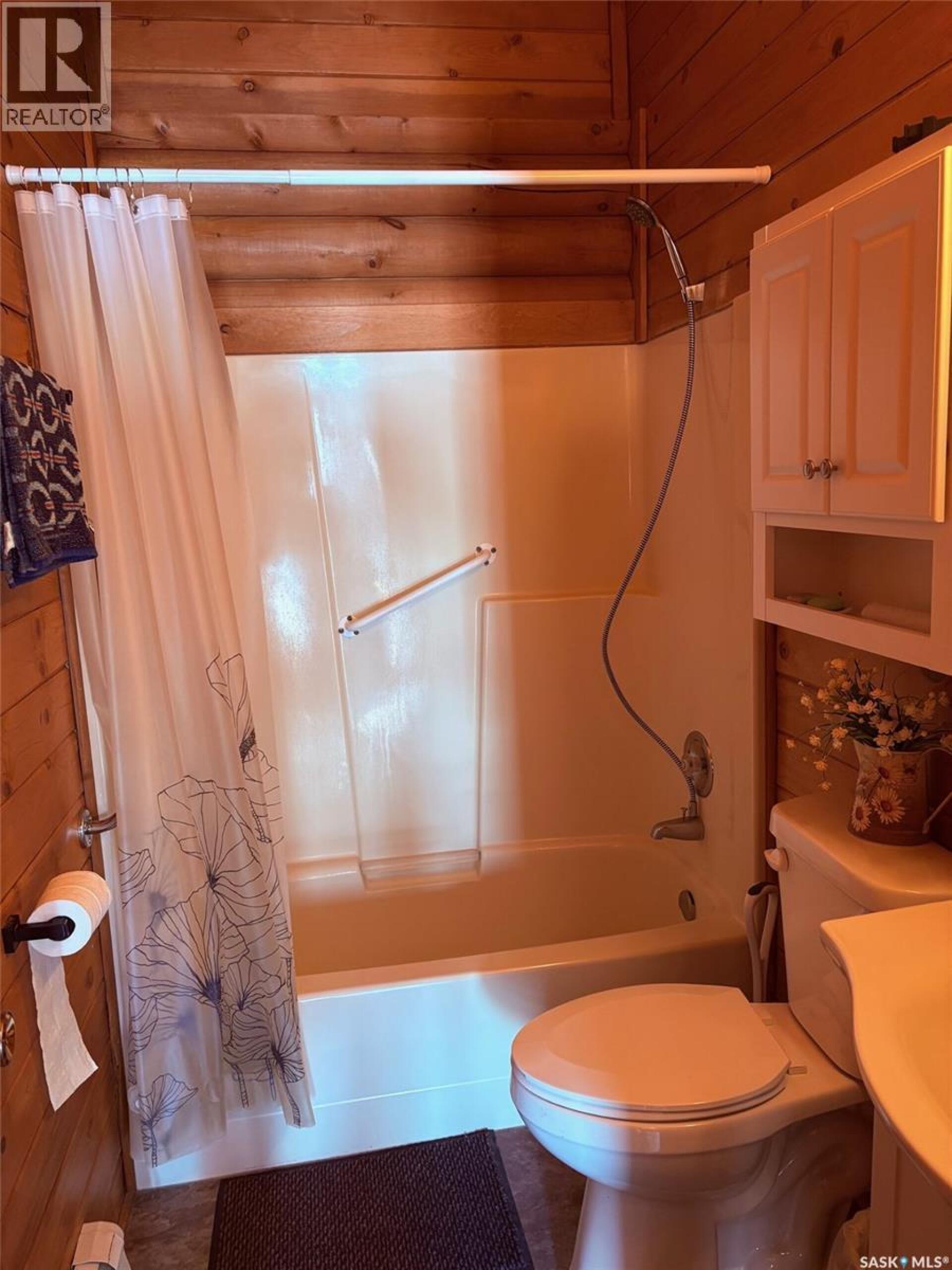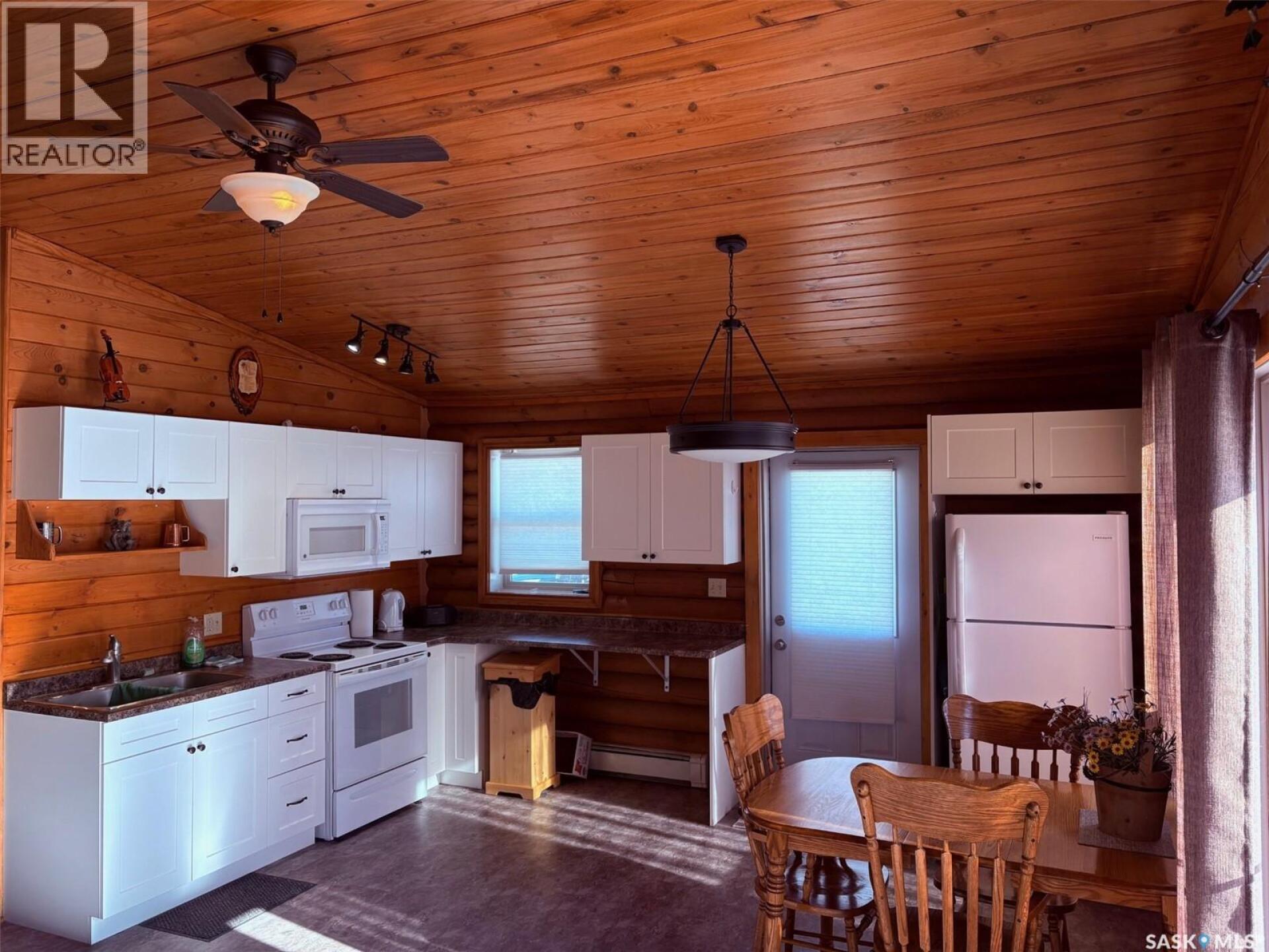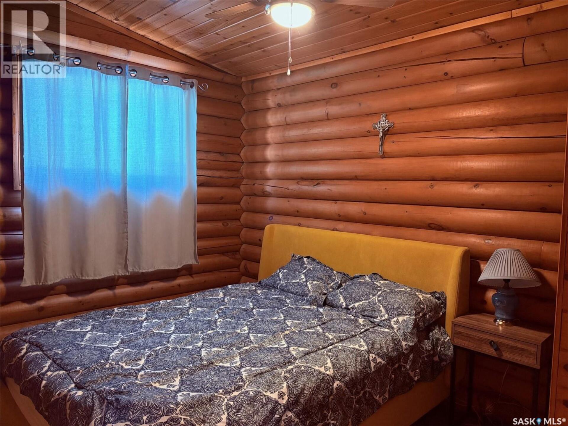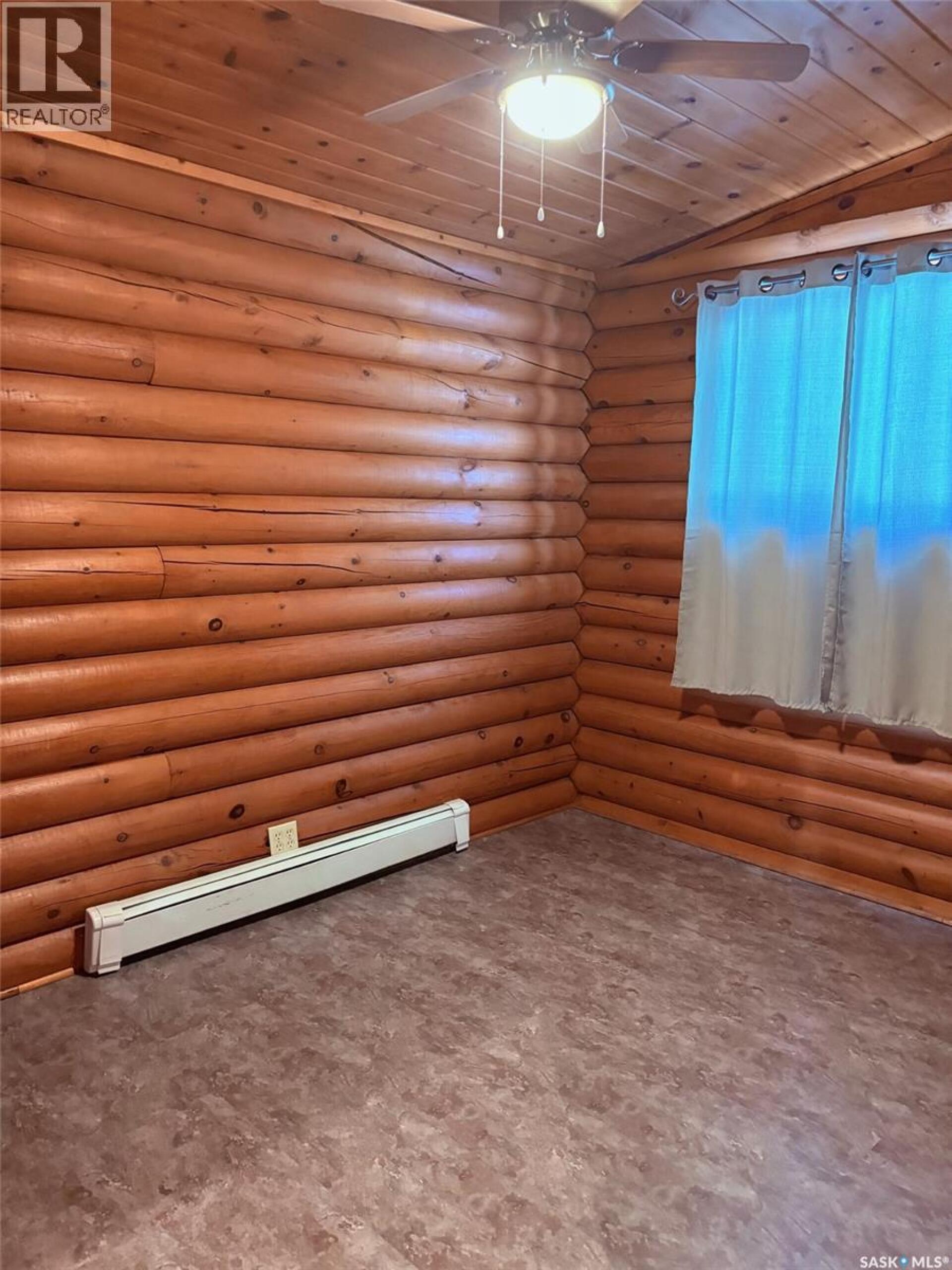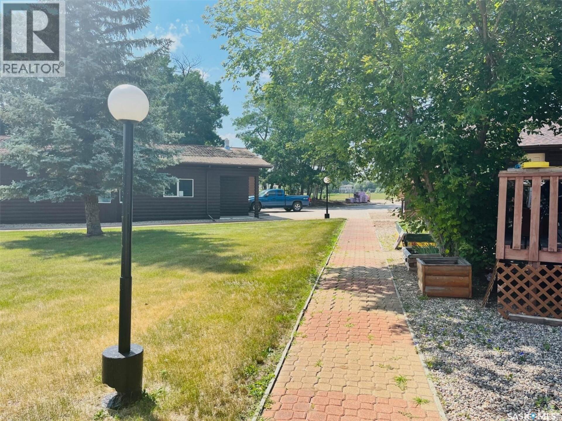 Welcome to your own retreat at Good Spirit Acres, where comfort meets convenience in a serene, low-maintenance setting just minutes from Good Spirit Lake Provincial Park. This charming year-round log cabin offers 672 square feet of thoughtfully designed single-level living, ideal for anyone looking to enjoy lake life without the hassle of yard work or exterior maintenance. Simply arrive, unwind, and embrace everything this beautiful area has to offer. The bright, functional kitchen comes fully equipped with a fridge, stove, and above-the-range microwave, flowing seamlessly into the dining area with direct access to the deck — perfect for morning coffee or relaxing evenings. The inviting living room features a cozy gas fireplace and mounted television, creating a warm and welcoming atmosphere, all within an open-concept kitchen, dining, and living space. Two well-sized bedrooms and a full four-piece bathroom complete the layout, providing comfortable accommodations for family or guests. A couch set, bed, and TV are included, making this home truly move-in ready. Outside, you’ll appreciate the interlocking brick sidewalk and parking pad with room to build a garage, along with a deck that overlooks a peaceful green space featuring lawn and a small playground area — ideal for enjoying the outdoors in a quiet, community-focused setting. Residents enjoy easy access to beach life, boating, golf, walking trails, a nearby convenience store, and year-round recreational activities, all while being conveniently located approximately 35 minutes from Yorkton. Condo fees of $450 per month (subject to change) provide exceptional value by covering power, gas, water, exterior maintenance, exterior insurance, and contributions to the reserve fund, allowing for truly stress-free ownership. Experience easy lake living and the beauty of nature — your peaceful escape awaits at Good Spirit Acres. (29439399)