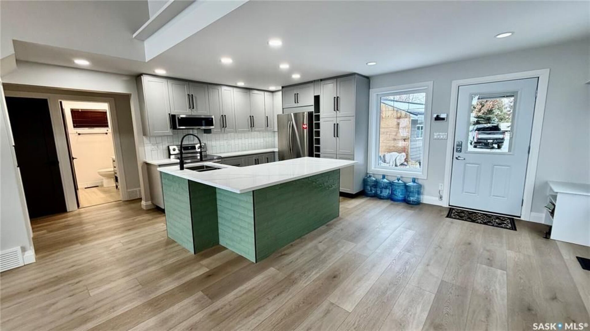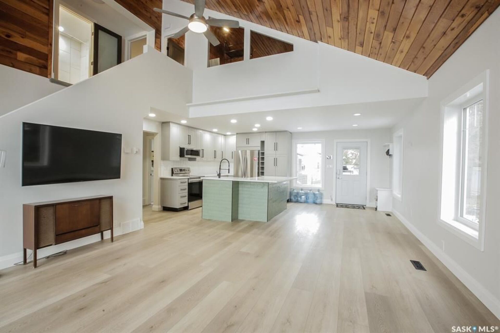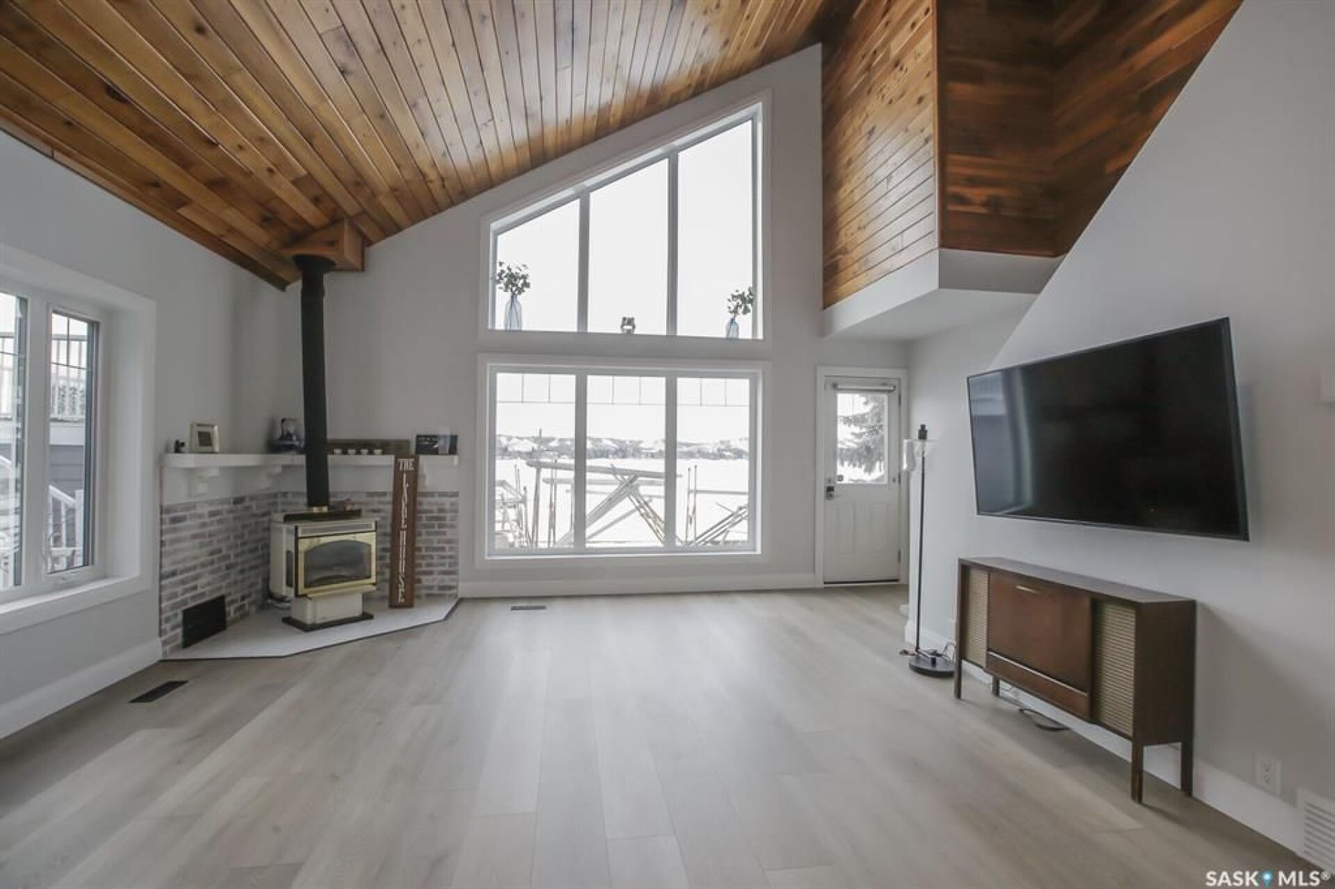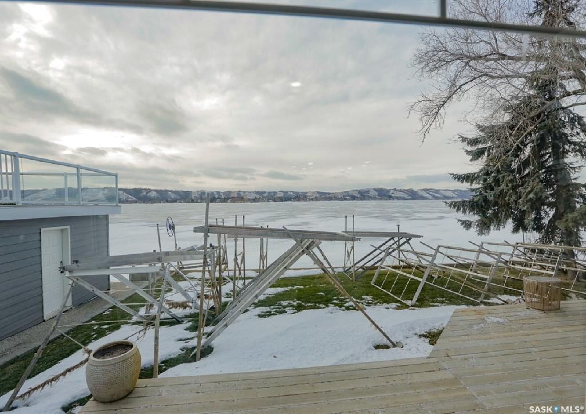 Rare opportunity for a fully renovated property located on Katepwa Lake. This move in ready home sits on two lots with approximately 70' of lakefront. Main level includes: Updated kitchen with quartz counter tops, new cabinets, LED lighting and stainless appliances. Primary bedroom with double closets, patio doors to lake facing deck. Four piece bath with tiled tub surround, updated; vanity, lights and flooring. Laundry room with additional storage. Second level includes three bedrooms. Two bedrooms with 8' ceilings and the third keeps the original cabin charm with an angled roof line. Second level bath has been updated with new flooring, vanity and tiled tub surround. Exterior of this property has been updated with metal roof, PVC windows and new matching siding on the boat house and garage. 14'x24' boat house with roof top deck.