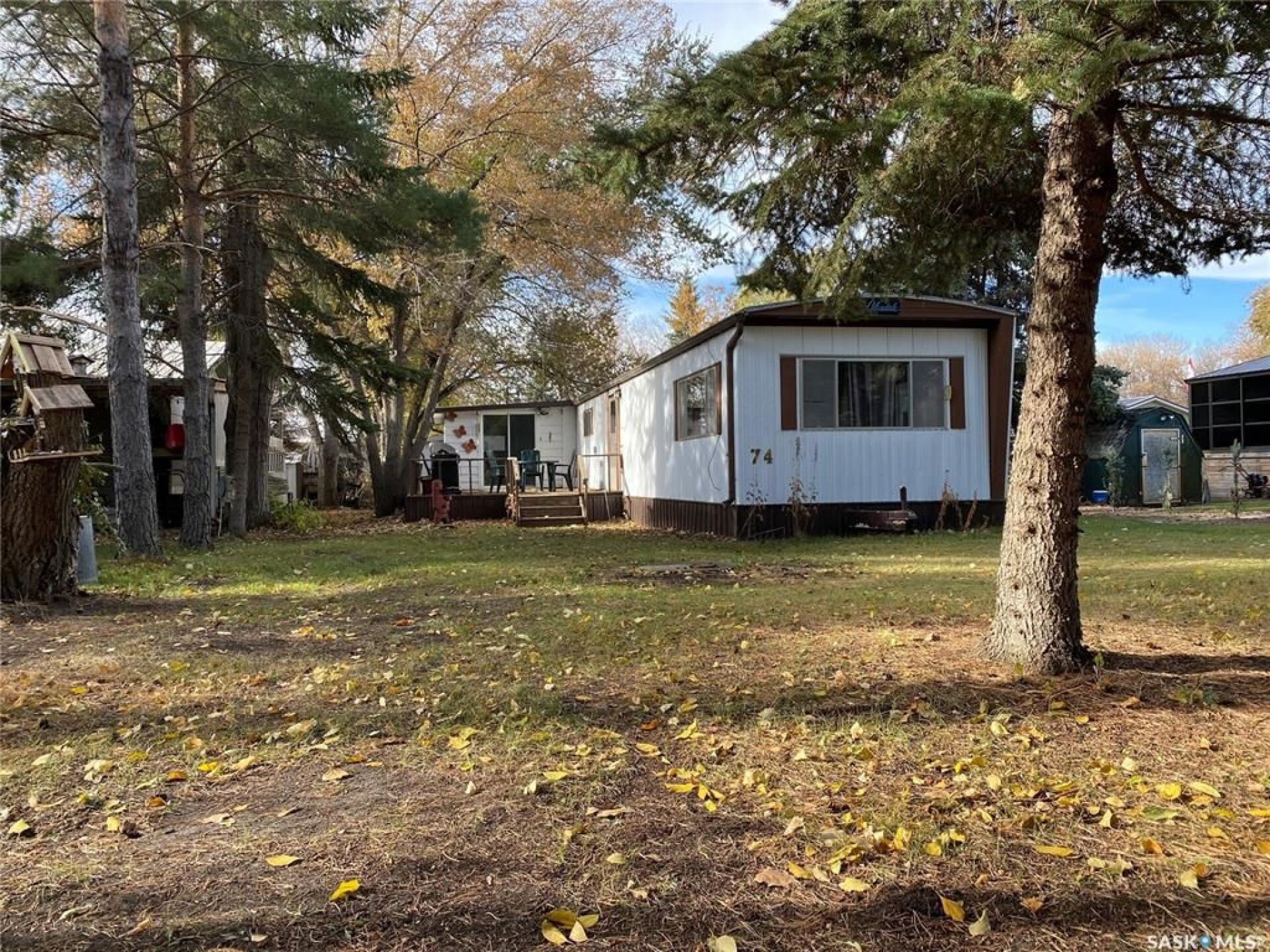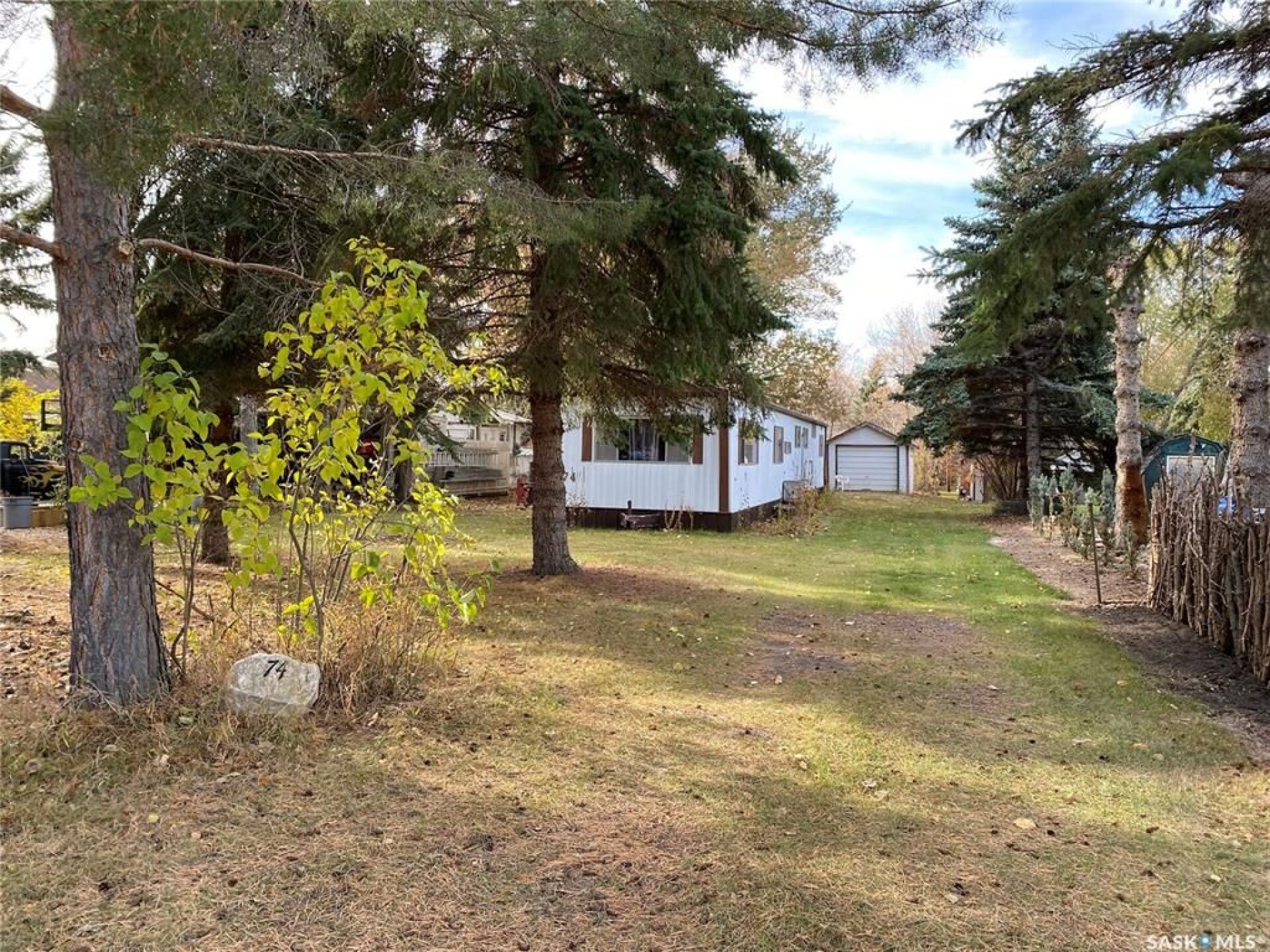 Welcome to 74 Cypress Street, Katepwa Beach — a cozy and inviting 874 sq. ft. modular cabin nestled on a spacious, well-treed lot. This 2-bedroom, 1-bathroom property features an open-concept kitchen, dining, and living area. Equipped with a natural gas furnace, this seasonal cabin could easily be converted for comfortable year-round living. Enjoy the convenience of a detached garage and storage shed, perfect for your beach and outdoor gear. Ideally located close to the main beach, golf course, and Trans Canada Trail. Call today for a personal viewing.